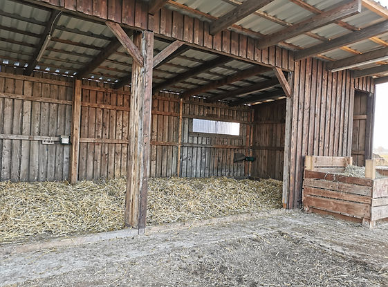 2 weiter Offenställe für jeweils 8 Pferde und freiem Zugang zu Heu und Koppeln stehen ebenfalls nach Neubau der Halle zur Verfügung.
